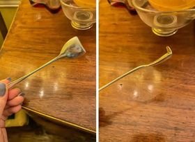 حيث أن هذه الملعقة الطويلة ذات المقدمة المعووجة بدون أدنى معرفة لماذا هذه الملعقة بهذا الشكل!